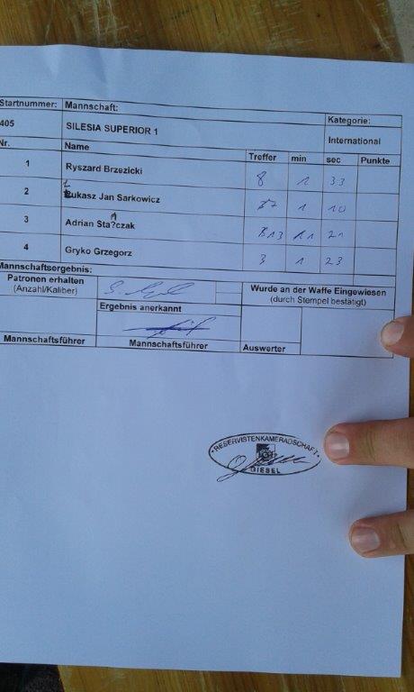 Drużynowo – Silesia Superior zajęła w kategorii 300m (15 strzałów w 2 minuty) 43 miejsce (na 255 drużyn), natomiast w kategorii International – zostaliśmy sklasyfikowani na 16 miejscu. Indywidualnie, w kategorii International – nasi zawodnicy – Adrian Stańczak oraz Ryszard Brzezicki – zajęli odpowiednio 6-te i 56-te miejsce (na 166)